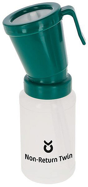 Nevratný dezinfektor struků pro aplikaci dipových roztoků. Díky nevratnému provedení nespotřebovaný roztok nevtéká do zásobní nádobky a tím zvyšuje účinnost roztoku a zamezuje rozšiřování mastitidy. Objem 300 ml.