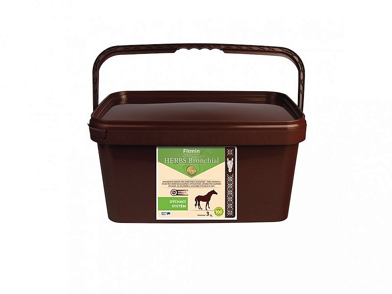 Doplňkové krmivo Fitmin Herbs Bronchial je unikátní směs účinných bylin určená pro koně, kteří mají z různých důvodů zvýšenou zátěž dýchacího systému - pro koně nachlazené, dýchavičné nebo sportovně zatěžované koně. Působí pozitivně na uvolnění a zklidnění dýchacích cest, podporuje zdravé dýchání a zároveň posiluje imunitní i trávicí systém.