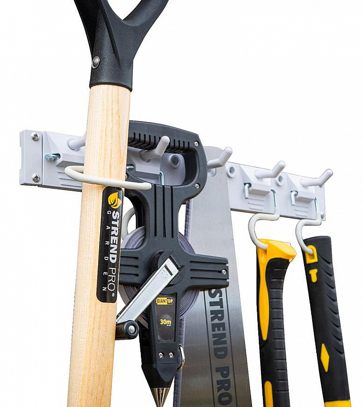 Praktický držák na nářadí, stájové či úklidové pomůcky apod. Vhodný do venkovních i vnitřních prostor. Upevňuje se přímo na zeď.