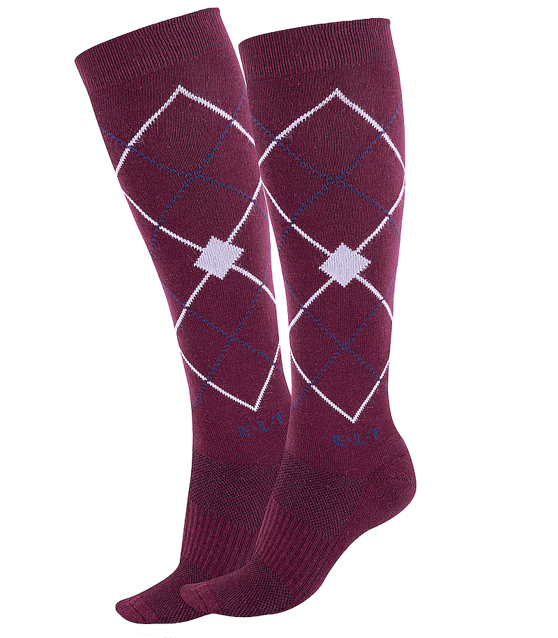 Jezdecké podkolenky ELT ve vínové barvě. Jsou velmi pohodlné, chodidlo má různé zóny úpletu pro optimální padnutí. Dostupné ve více velikostech.