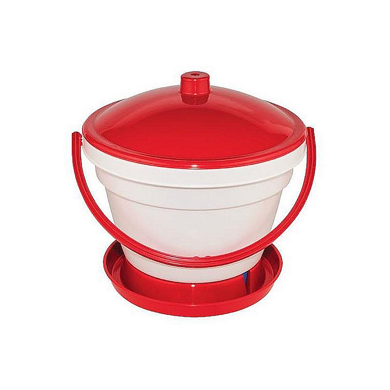Kbelíková napáječka pro drůbež. Vyrobená z plastu, opatřená plovákem pro automatické dopouštění vody ze zásobníku. Praktické držadlo pro snadnou manipulaci. Objem 18 l.