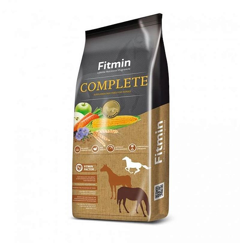 Extrudovaná krmná směs pro koně Fitmin Complete je určená pro hobby koně a koně ve střední zátěži. Neobsahuje oves. Balení 15 kg.