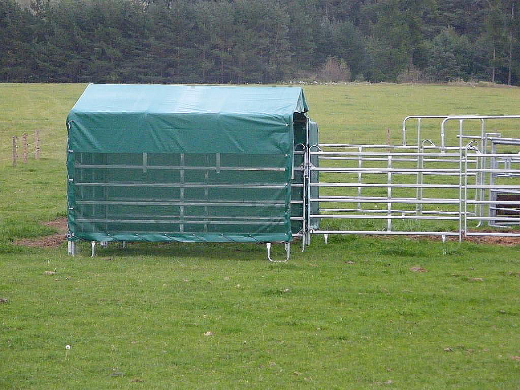 - mobilní přístřešek ALM vhodný pro zvířata, stroje, krmivo apod.