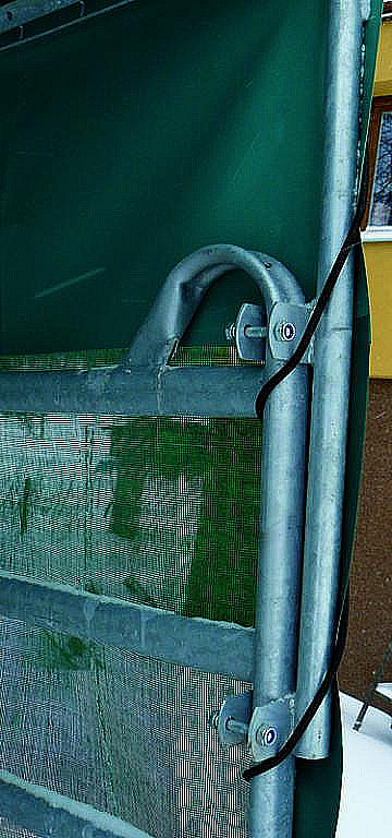 - je opatřena zpevněným okrajem s oky, upevňuje se pomocí pružného lana