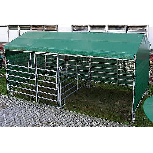 - skládá se ze 4 ks ohradních panelů 3,6 m, střešní konstrukce, plachty a kotvících trnů