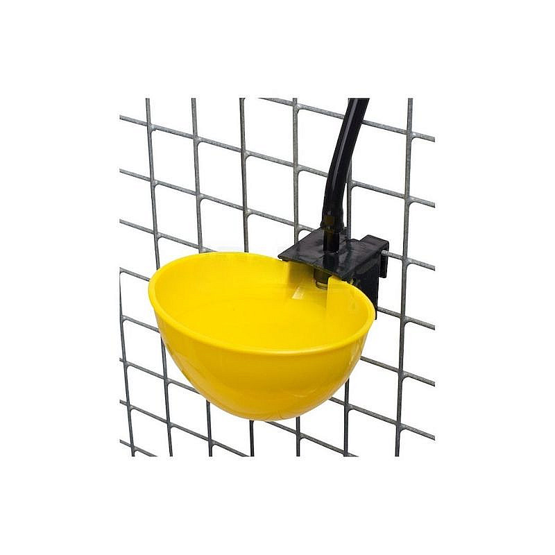 Misková napáječka pro drůbež, určená k zavěšení na klec. Určená k napojení na hadičkový rozvod vody. Vhodná pro křepelky, kuřata i holuby.