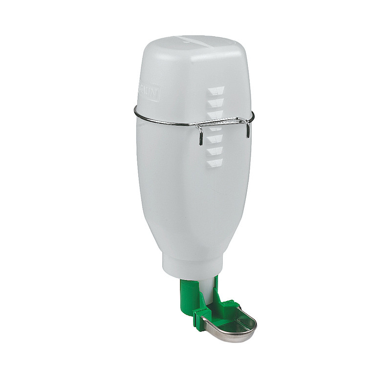 Plastová drůbeží napáječka s horním plněním, která je opatřena speciálním výkyvným niplem vhodným pro drůbež. Nedoporučujeme pro králíky. Objem 500 ml.