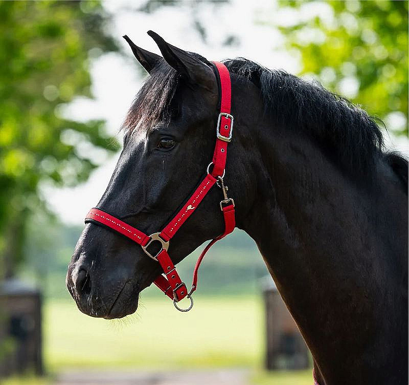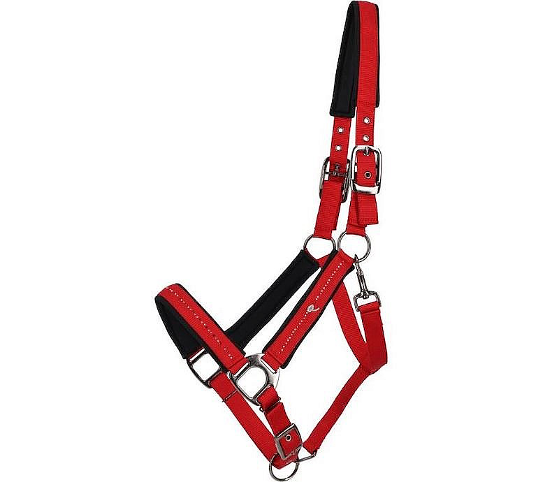 Stájová ohlávka QHP z kolekce Oakleigh v luxusní červené barvě. Pro ochranu proti odření je měkce vypodložena, nastavitelná na nose i nátylníku. Dostupná v různých velikostech.