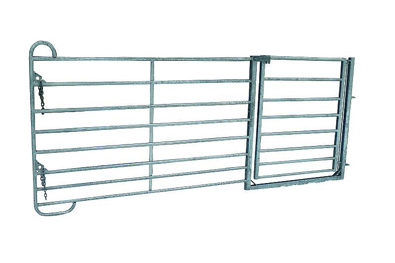 Ovčí ohradní panel s brankou o výšce 110 cm v různých délkách. Branka umožňuje snadný vstup do mobilní ohrady či manipulační uličky. Spojení pomocí řetízků.