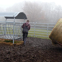 - při zmenšení objemu vloženého balíku, je možné pomocí řetězů koš stáhnout tak, aby byl zajištěn optimální přístup zvířat ke krmivu