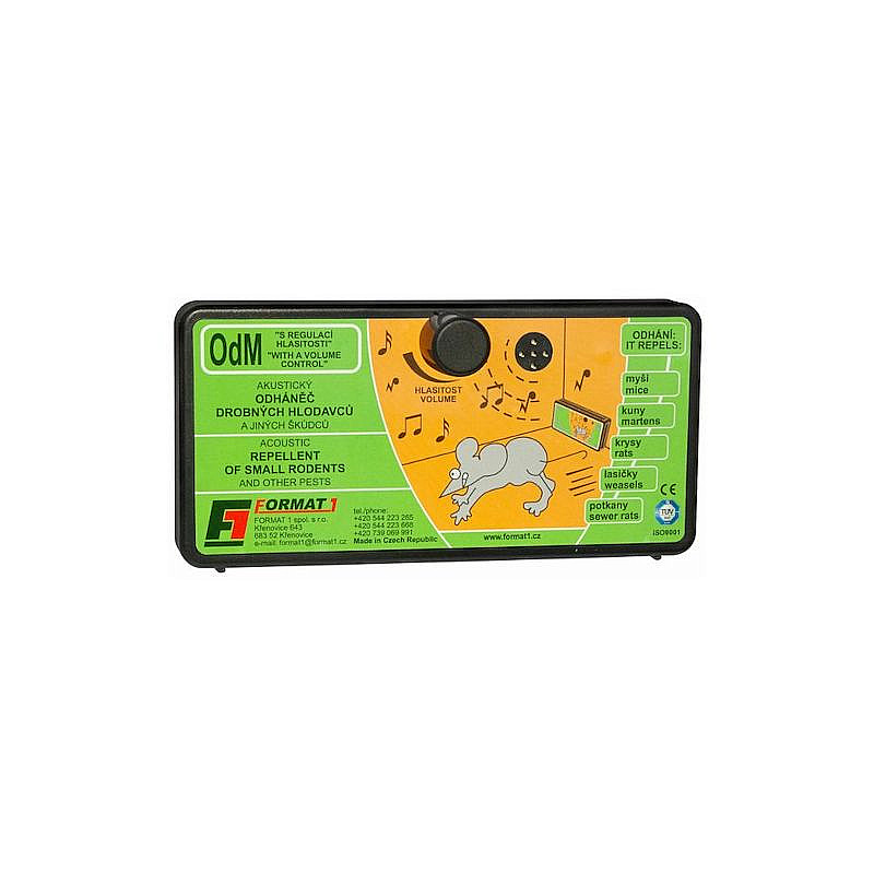 Akustický plašič drobných hlodavců. Funguje na principu nepříjemného zvukového prostředí, díky kterému škůdci následně opouští chráněný prostor. Vydává přerušovaný tón, s možností regulace hlasitosti. Včetně adaptéru.