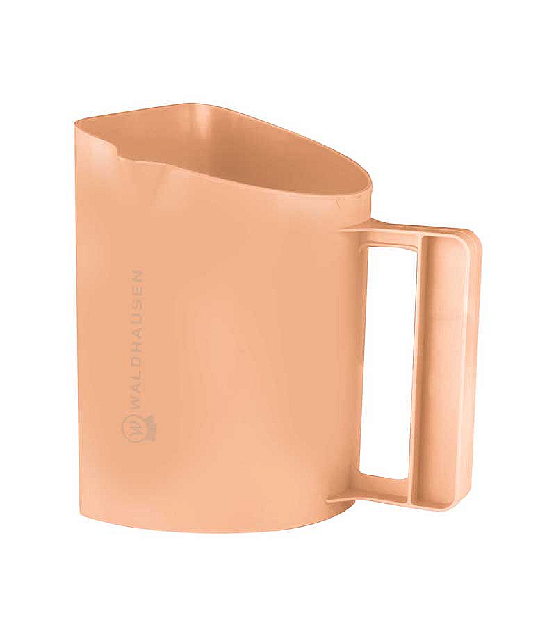 Plastová odměrka na krmivo Waldhausen. Praktická stupnice pro rychlé odměření krmiva a výlevka usnadňující manipulaci s tekutinami. Objem 2 l, barva oranžová.