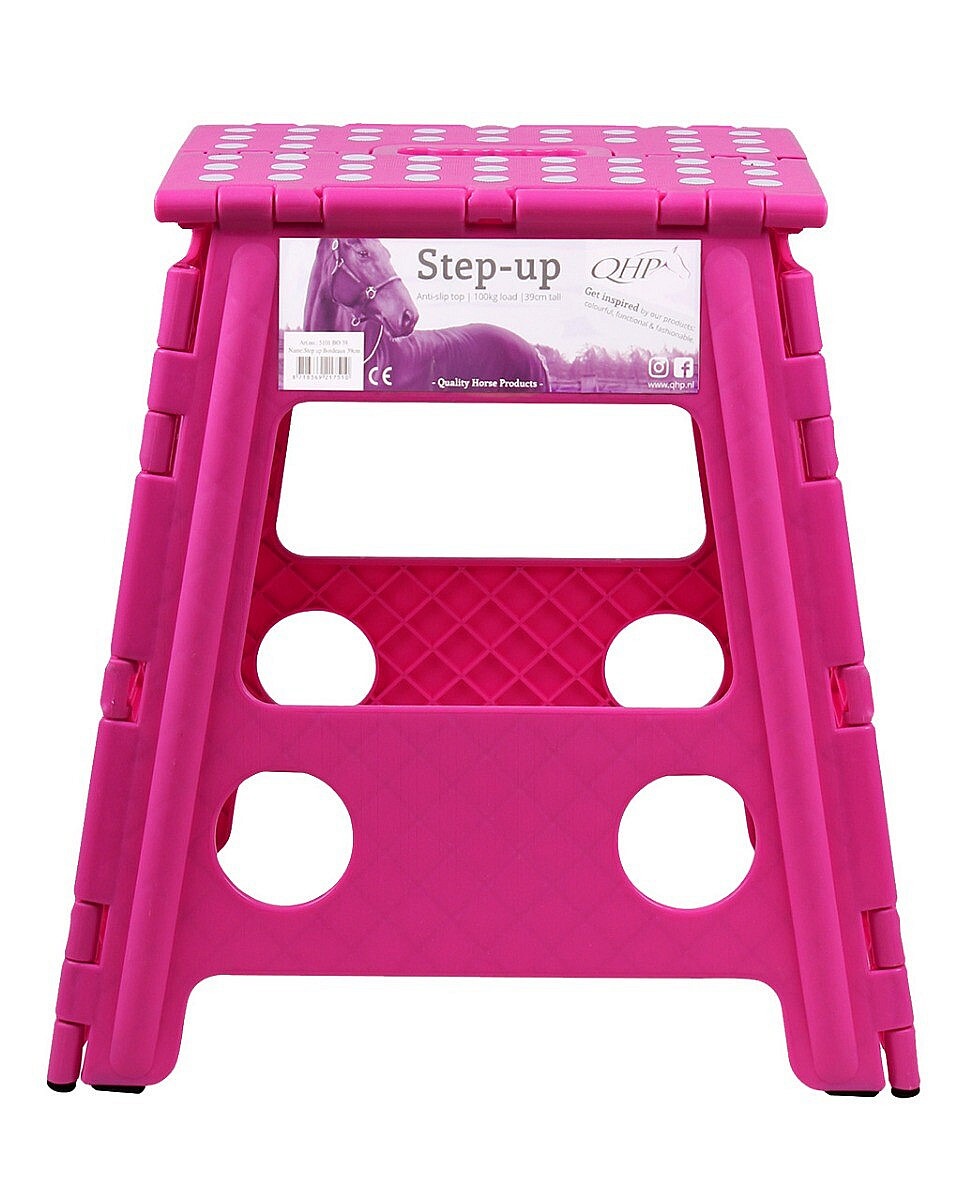 Praktická skládací stolička vyrobená z velmi odolného plastu. Lze ji využít nejen při nasedání na koně, ale také do stáje, v domácnosti či na zahradě. Lze ji jedním pohybem složit a uložit tak, aby nezabírala téměř žádné místo.