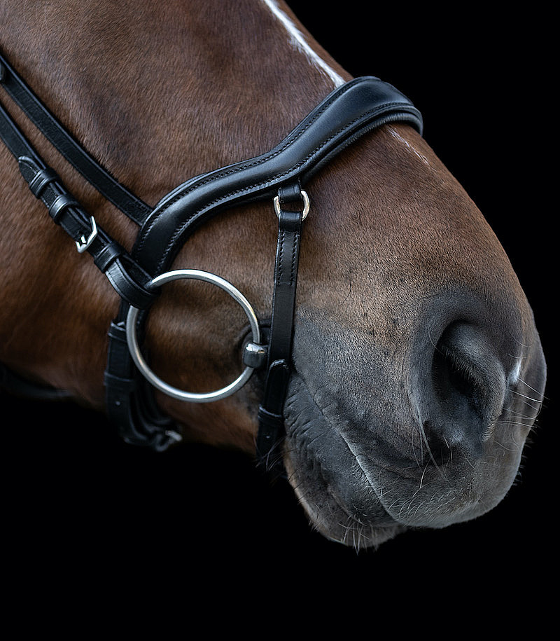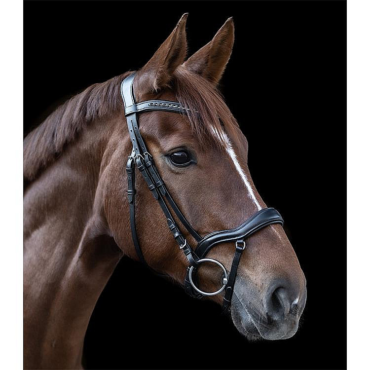 Velmi kvalitní kožená uzdečka Waldhausen Santander v černé barvě. Nátylník, nánosník i čelenka jsou měkkce polstrovány. Uzdečka je elegantně zdobena bílým prošitím a je dodávána společně s otěžemi. K dostání v různých velikostech.