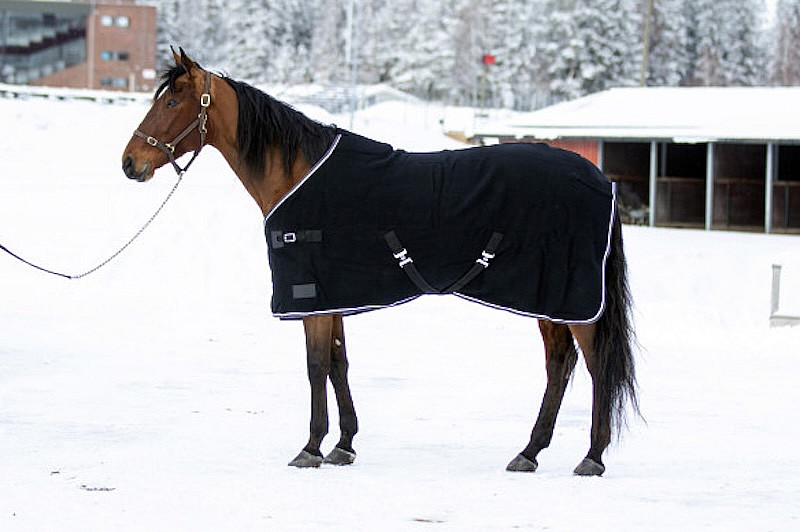 Vlna je přirozeně prodyšná, savá a termoregulační, takže odvádí vlhkost od těla koně a zároveň ho udržuje v teple. Deka je vybavena klasickým křížovým zapínáním pod břichem a koženým popruhem na hrudi. Okraje deky jsou zpevněny lemem pro delší odolnost.