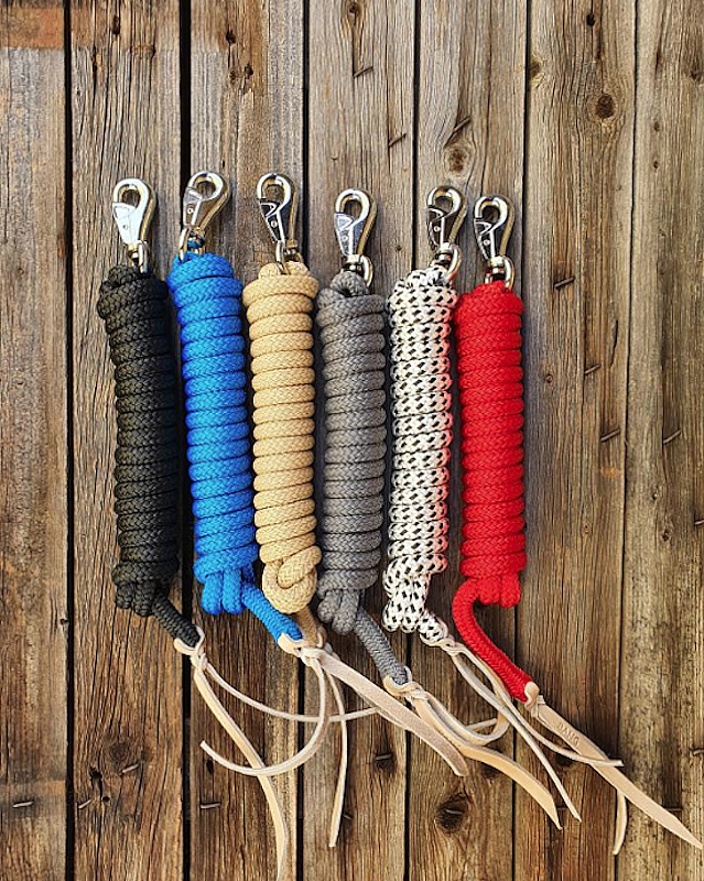 Vodítko pro koně Norton vyrobené spletením nylonových popruhů. Otočná karabina, dostupné v různých barvách.